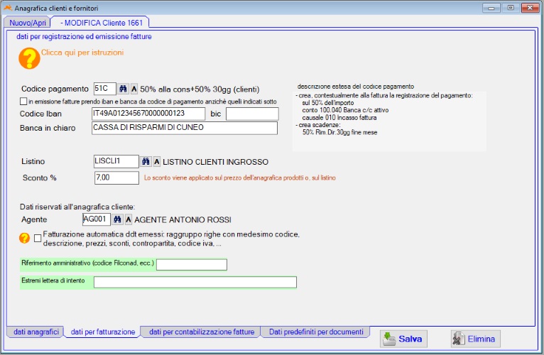 pagamento in alternativa all'anagrafica cliente; in questo caso sul cliente
